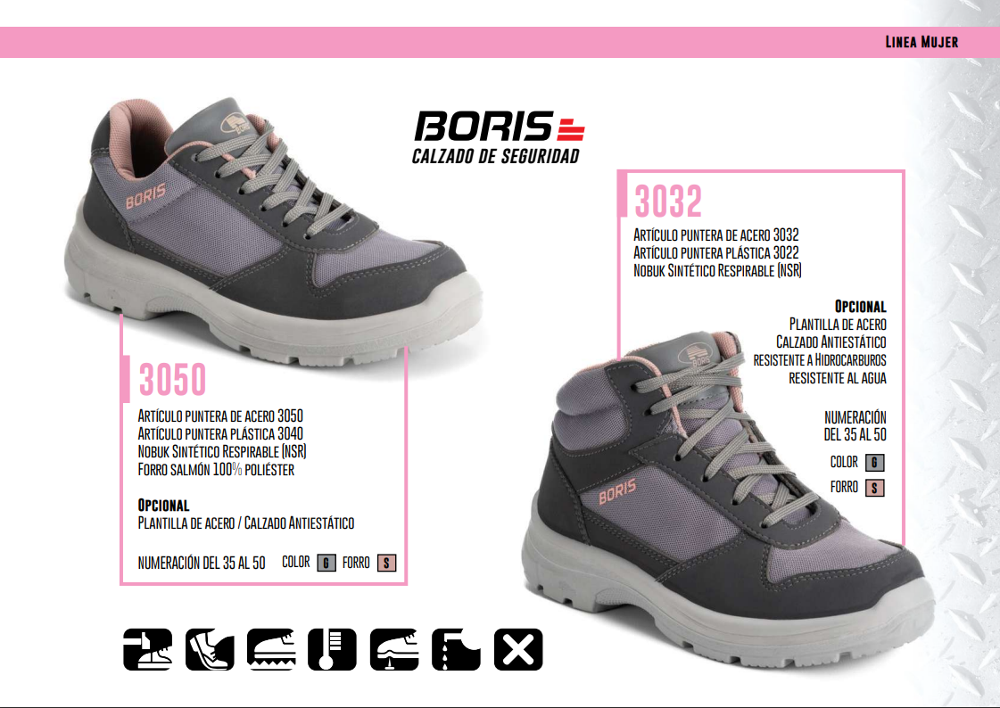 | Modelo | 3050 (puntera de acero) 3040 (puntera plástica) |